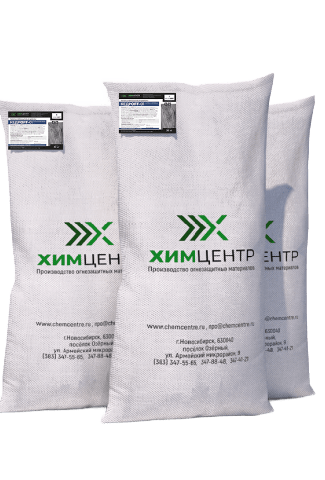 Поверхностная пропитка древесины раствором «КЕДРOFF-01» переводит древесину в трудносгораемый и трудновоспламеняемый материал с расходами соответственно 600 г/м2. (I группа огнезащитной эффективности, ГОСТ Р53292) и 300 г/м2 (II группа огнезащитной эффективности)